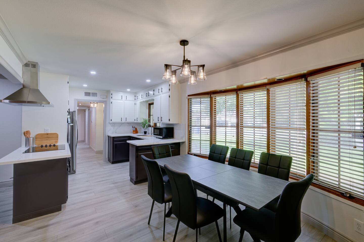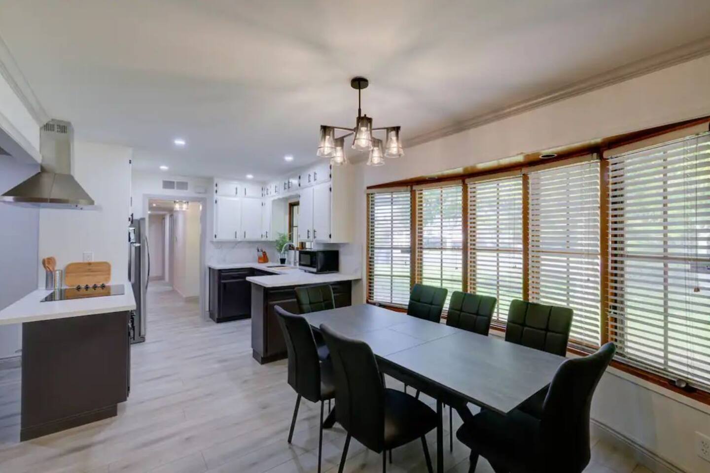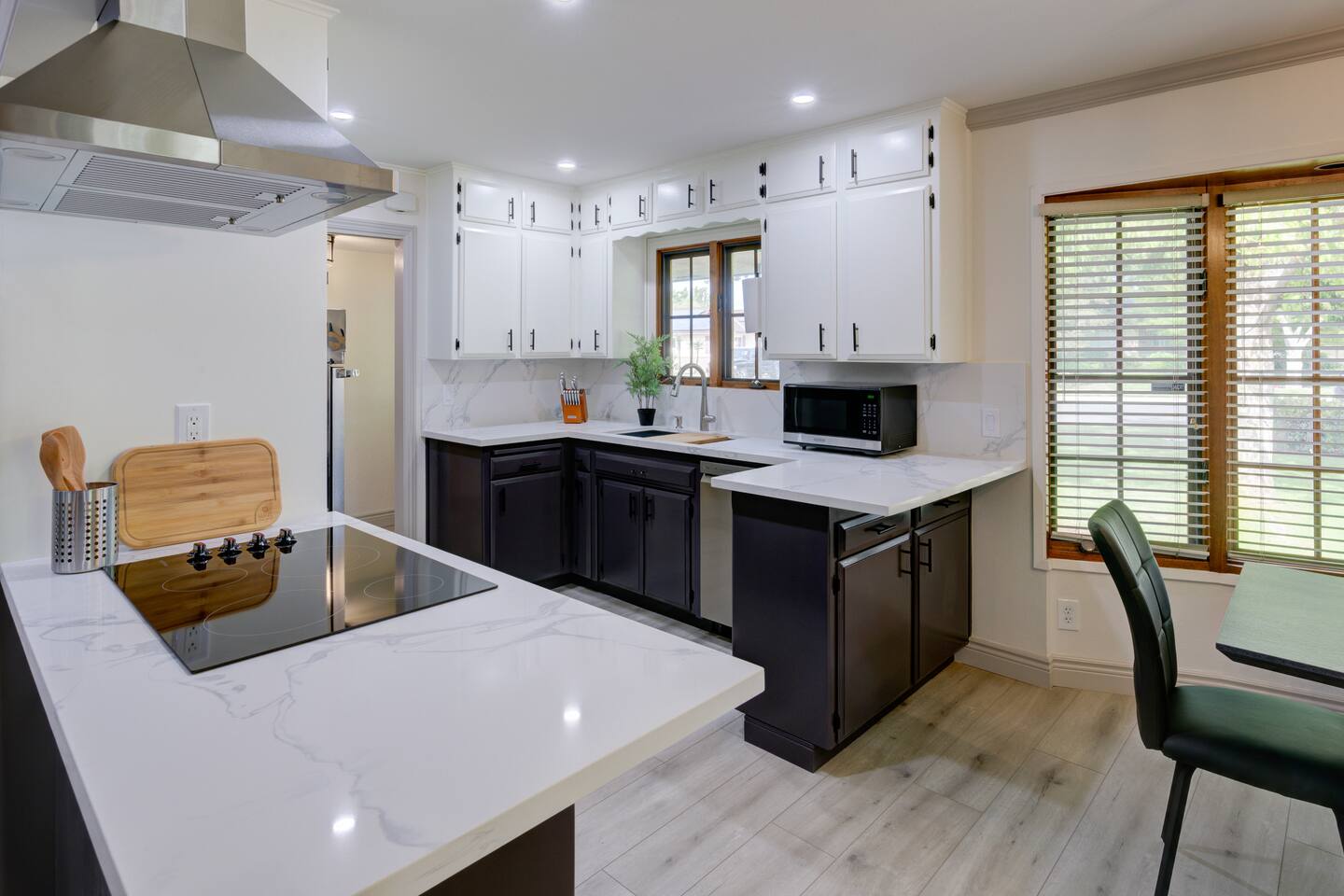 This is a very nice house on a beautiful lot on a quiet street. The bedrooms are large and the beds are very comfortable. The kitchen is nice and well stocked for cooking. Coffee and snacks were a bonus. The bathrooms are also clean and nice. We would definitely stay there again. Highly recommend it. Also, the home owner is very fire and easy to work with.
